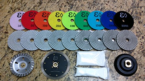 No response for "4" Wet/Dry Diamond Polishing Pad Complete Set (10pcs+1+a Pint of Densifier/Sealer) Plus Turbo Saw Blade for Granite, Concrete, Stone Polishing Price"